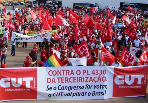 EM BRASÍLIA, sindicalistas de São Paulo, Distrito Federal e Goiás, vão ocupar o Congresso Nacional, a partir das 14h, para impedir a aprovação do PL 4330; e protestar contra outros projetos, como e de reforma política do PMDB que não acaba com o financiamento empresarial das campanhas eleitorais, uma porta aberta para a corrupção.